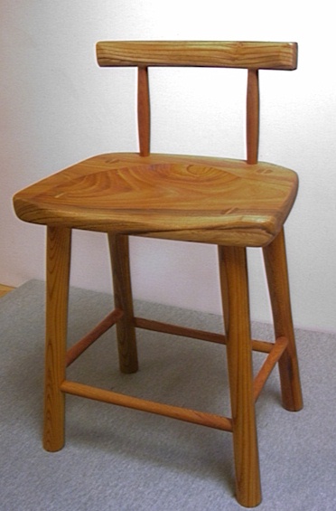 小さな背もたれの木の座の椅子。