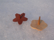 サクラとウメの花びらの形のこま。